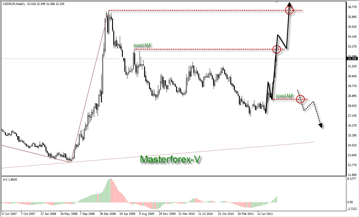 Что ожидает курс российского рубля? Как отмеччают эксперты факультета детального изучения ТС Masterforex-V, курс российского рубля продолжает свой бычий тренд. На пути бычьего движения расположены важные уровни сопротивления - пивот МФ в области 33,05 и исторический максимум 36,51.