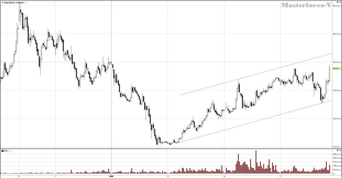 • "Транснефть": данная акция торгуеться в ап-тренде, видно что за последние 4 недели ее покупали и рост был на повышеных объемах, что говорит нам о интересе игроков к данному инструменту. Но поскольку цена подходит к сильному сопротивлению 50 тыс. от которого возможен отскок рекомендуем дождаться коррекции в район 40-35 и оттуда на признаках возобновления ап-тренда искать покупки.