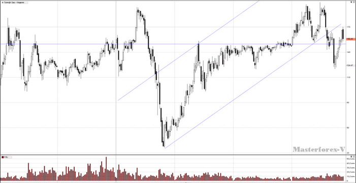 • "Татнефть": на данный момент цена торгуеться в районе сильного уровня 150 , в зависимости от того ниже или выше этого уровня закрепиться цена будет зависеть дальнейшее ее движение.