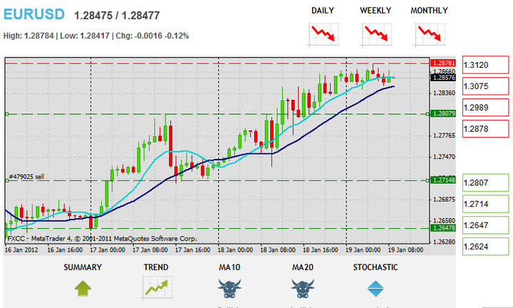 Форекс прогноз пары "Евро Доллар" на 20 января 2012 года