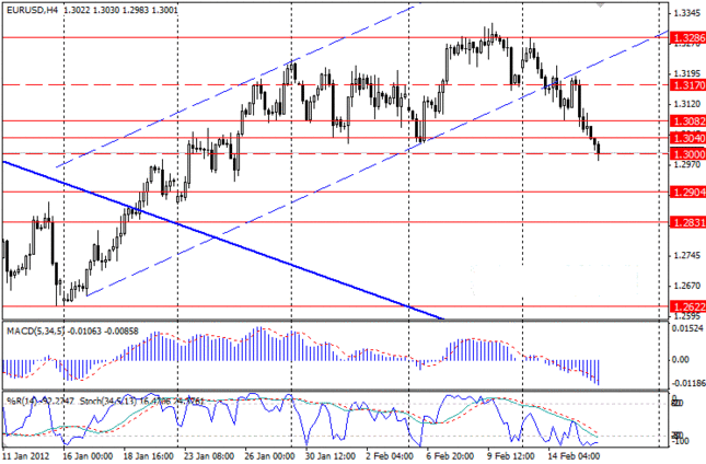 В общем, по зоне евро за четвертый квартал прошлого года, ВВП упал на 0.3%, что является выше прогнозных показателей, по которым экономика должна была снизиться на 0.4% к/к. Хорошими также были и данные по торговому балансу зоны евро, их тоже опубликовали в среду, профицитная часть за декабрь выросла до 7.5 млрд. евро, против 6.1 млрд. раньше. Сегодня новостей по Евросоюзу появится немного, рынку покажут только ежемесячный бюллетень ЕЦБ, где будут данные по анализу текущей ситуации и прогнозные показатели на перспективу. Эти данные, как правило, могут оказать очень слабое влияние на рынок. Центром влияния и внимания будут вопросы, которые связанные с помощью Греции. Рынок подтвердил то, что предполагалось в прошлом комментарии о продлении снижения к уровню 1.3040/00.