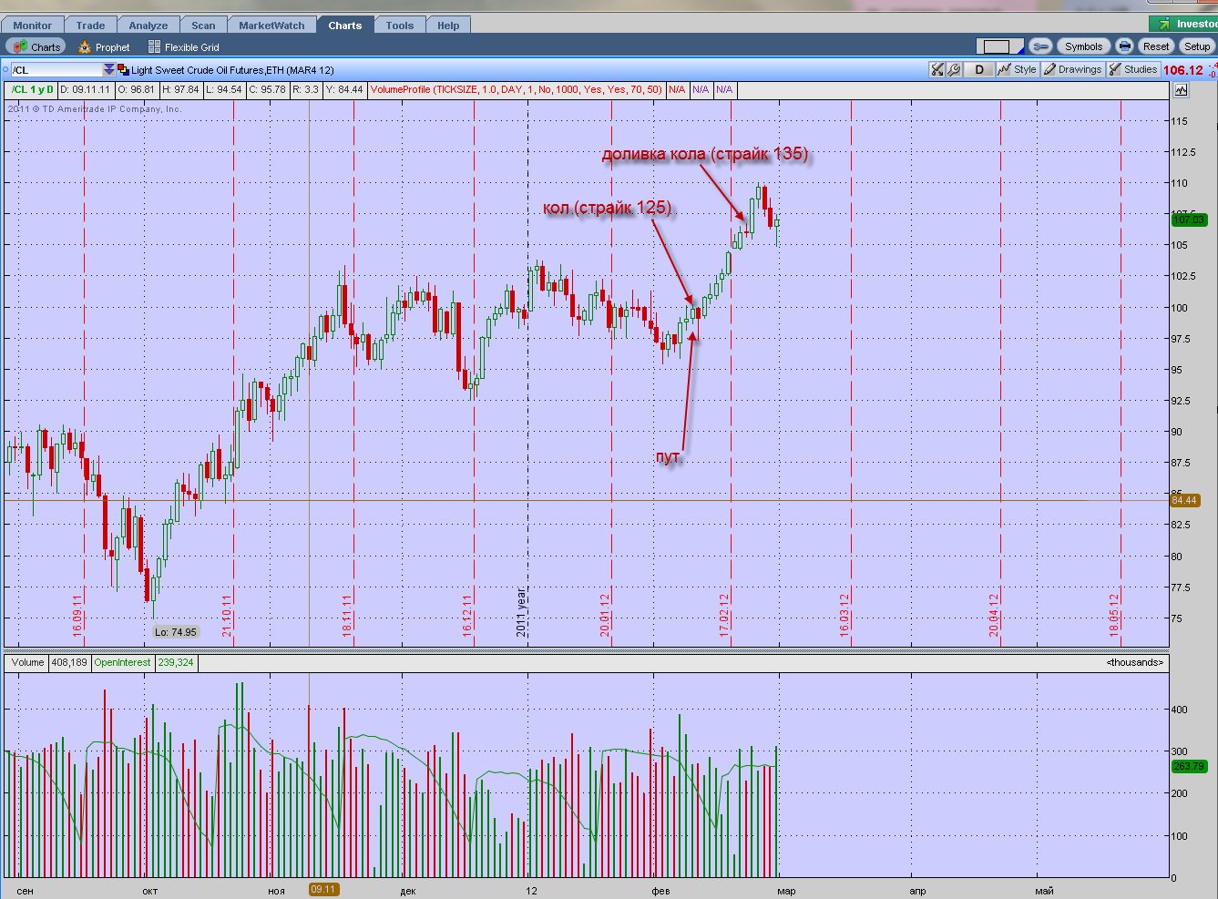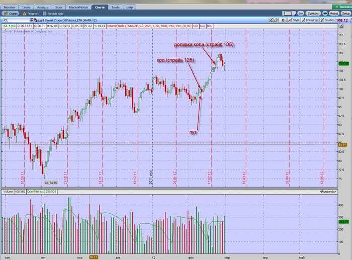 Новости биржи, опционы, цена на нефть. В связи с тем, что нефть протестировала уровень 110, опционы кол на этот инструмент подорожали. Однако в краткосрочной перспективе не следует ожидать дальнейшего ее роста. Этому есть ряд причин: во-первых, в США запасы нефти находятся на пятилетних максимумах; во –вторых, увеличения производства нефти странами ОПЕК в феврале до 31,055 млн. бареллей в день.