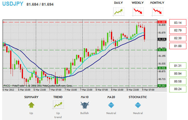 Новости Форекс, курс японской йены. Пара USDJPY приобрела импульс и сформировала вершину выше основания, успешно достигнув цели закончила день с прибылью в 53 пункта! После этого цена достигла сильное сопротивление 81.88 (R1), годовой максимум. Мы ожидаем, что цена пойдет вверх, но только прорыв выше 81.88 (R1) будет подтверждением длинных позиций с целью 82.79 (R3). Стоп-лосс должен быть размещен на 81.31 (S1), советуют аналитики компании FXCC.