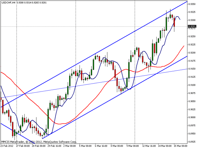 Новости Форекс, курс швейцарского франка. В ходе вчерашних торгов американская валюта продолжила рост против своих конкурентов, в том числе, показав прирост на 75 пунктов против швейцарского франка. Аналитики «FOREX MMCIS group» отмечают наличие краткосрочного восходящего канала по паре USD/CHF, берущего свое начало в последних числах февраля. В ходе первых часов торгов в четверг была достигнута верхняя граница упомянутой тенденции и, технически, снижение может продолжится до нижней границы.
