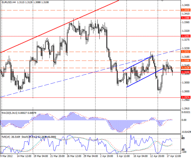 Экономическая статистика вчера была противоречивой, что не могло не сказаться на позициях евровалюты. Так, с одной стороны, индекс экономических ожиданий в Германии (по данным ZEW) в нынешнем месяце поднялся до 23,4 пункта (против 22,3 пункта в марте), хотя аналитики предрекали снижение до 20 пунктов. На руку евро сыграло и понижение доходности 10-летних гособлигаций Испании (хотя стоимость заимствований по-прежнему оставалась высокой). С другой стороны, рост инфляции в еврозоне в марте оказался больше, чем в предыдущем месяце: 1,3 проц. м/м и 2,7 проц. г/г против 1,2 проц. м/м и 2,6 проц. г/г соответственно.