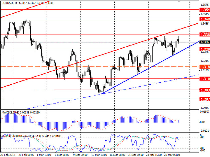Очередная попытка закрепиться ниже 1.3290 не увенчалась успехом, после касания уровня 1.3260/50 цена возобновила подъем и сейчас пара находится на отметках 1.3340/30. Индикаторы хоть и зафиксировали небольшой всплеск оптимизма, однако кардинальных изменений не показывают. Пробой поддержки 1.3290 с закреплением цены ниже краткосрочной линии тренда (синяя линия) обозначит высокую вероятность снижения торгов в район вспомогательной линии тренда (синий пунктир), наличие преимущества же среднесрочного «бычьего» тренда подскажет возврат цены в канал (красные линии), т.е. пробой сопротивления 1.3380.