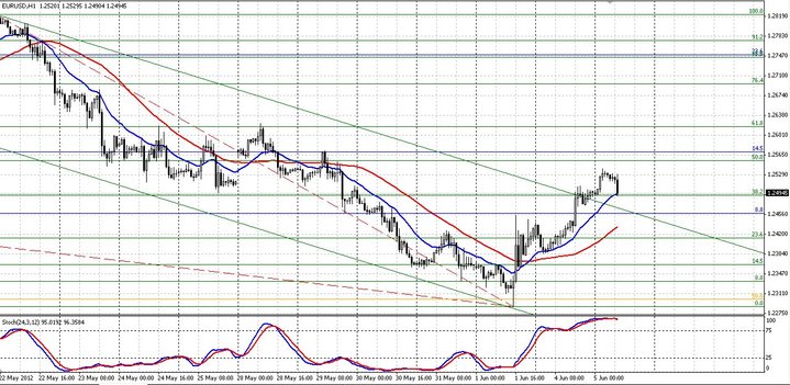 Технически пара уже в достаточной степени сильно восстановилась. график показывает разворот вблизи значения 50,0% Фибоначчи от 1,2823 до 1,2287. Промежуточным уровнем поддержки есть уровень 1,2457 (здесь пересекаются пробитая линия сопротивления и уровень 8,8% дневного часового графика). Будущей причиной снижения выступит уровень 1,2364 (психологический уровень). На случай дальнейшего роста пары мы можем увидеть котировки 1,2554 и 1,2616 (61,8% Фибо, который может оказать еще большее сопротивление предстоящему повышению пары).