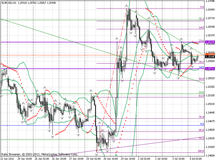 Во вторник курс евро продолжил торговаться в узком спектре, где линией поддержки выступает уровень 1,2560, а сопротивлением 1,2620. 2-ой день подряд на рынке ожидается низкий объем торгов во время американской сессии по причине празднования сейчас в США Дня Независимости.