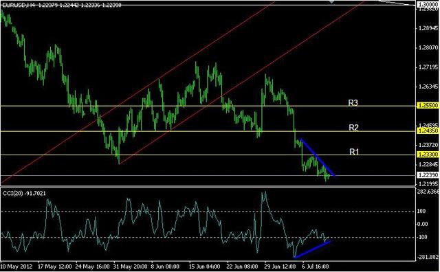 Пара Евро доллар вчера была нерешительной, но все еще сохраняет внутридневное медвежье смещение, сегодня достигнув низового рекорда 1.2212.