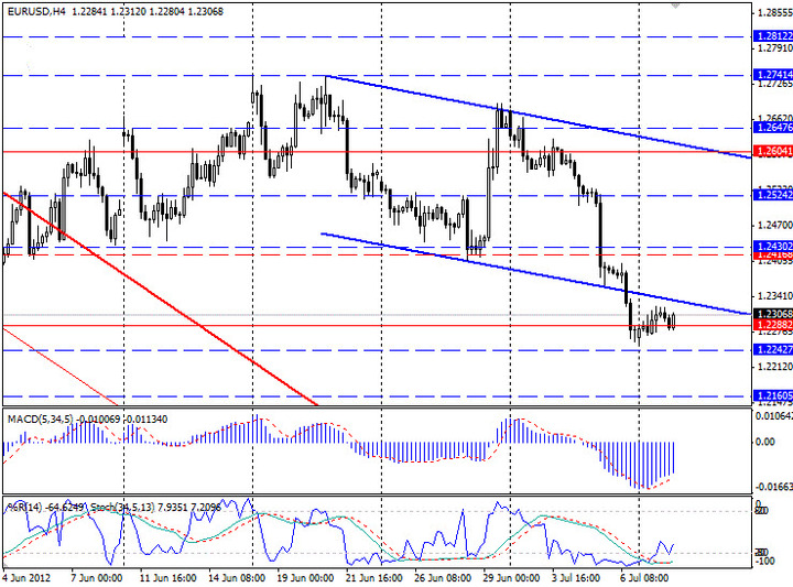 Курс евро остался упрочняться в чрезвычайно нешироком боковом коридоре, и сейчас цена находится на отметках 1.2300/1.2290. Кардинальных изменений не наблюдается, показатели продолжают демонстрировать ослабление «медвежьего» настроя, что предлагает ожидать боковой консолидации. Возможно создание боковой коррекции в диапазоне ограниченном сопротивлением 1.2400 и поддержкой 1.2270/50. В среднесрочном плане доминирующие позиции остаются за «медведями» и следующая цель находится на уровне 1.2100/1.2000.