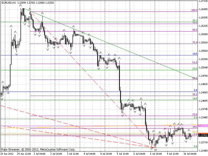 В организации Larson&Holz IT Ltd. ожидают продолжение снижения пары Евро/Usd к уровню 1,2200 на этой неделе. Предварительно возможен коррекционный рост к уровню 1,2350, где сопротивление окажут 23,6% и 8,8% Фибоначчи часового и четырехчасового таймфреймов. Следующее сопротивление окажет уровень 1,2430, где кроме того пересекаются несколько уровней Фибоначчи и линия тренда проведенная по точкам 1,2679 и 1,2624.