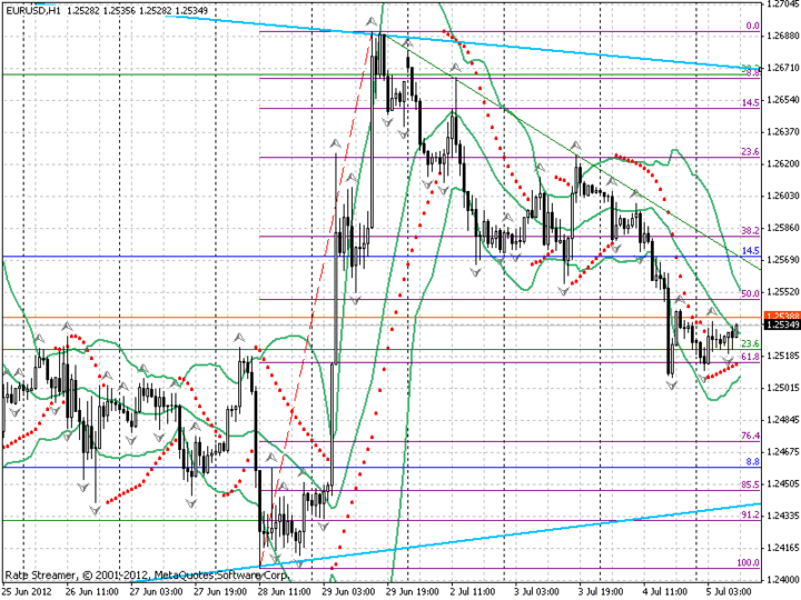 Курс евро в среду уменьшился от значения 1,2600 к 1,2508 на фоне публикуемую информацию негативной информации по зоне евро и низкого объема торгов в период американской сессии из-за празднования в сша Дня Независимости. Рыночные игроки сегодня ждут оглашения решений по денежно-кредитной политике Европейского центрального банка.