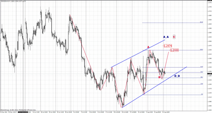 Поддержка D_D и волновая структура АВС - до сей поры данный сценарий актуален. Поддержка 1,2240 ( D_D ) является весомым показателем, потому что, ежели сценарий АВС завтрашними новостями не поддержится - возможно движение вниз, по флагу, образованному линией сопротивления А_А и линией поддержки D_D, а это разрушит среднесрочные планы быков.