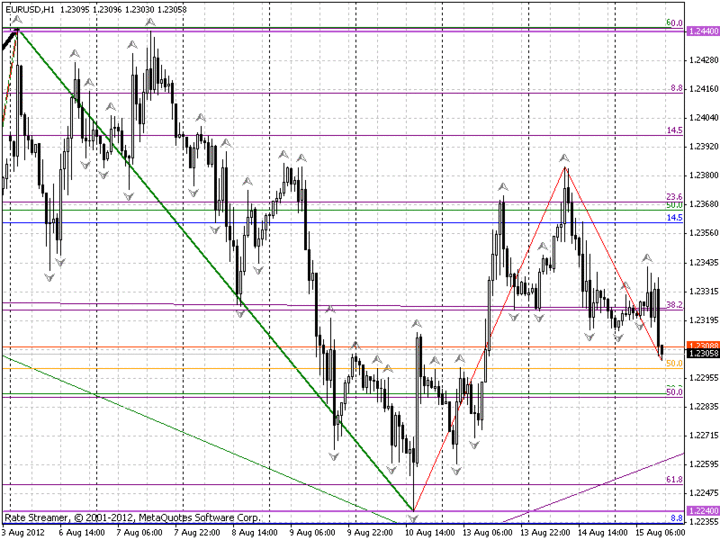 На торгах во вторник курс EUR демонстрировал разнонаправленное движение. Во время европейской сессии после выхода наилучших чем ожидалось новостей по повышению ВВП государств зоны евро, пара укрепилась к уровню 1,2384, где сопротивление оказали несколько уровней Фибоначчи различных таймфреймов, случился реверсивное движение.